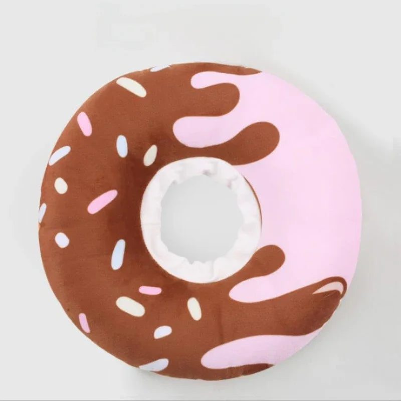 Com design anatômico e divertido de rosquinha, o colar é leve, silencioso e não obstrui a visão ou a movimentação do pet. Confeccionado em algodão macio com enchimento leve e resistente, proporciona toque agradável à pele do animal. Lavável, durável e seguro para uso prolongado.