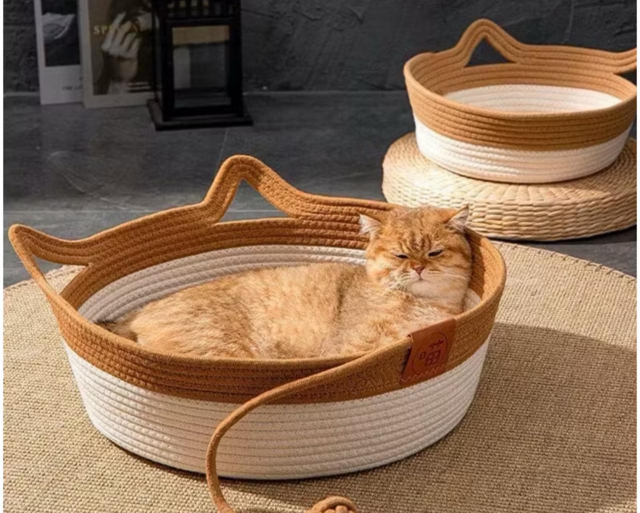 Criado especialmente para oferecer um refúgio acolhedor e estiloso aos felinos, este cesto combina design encantador com funcionalidade. Ideal para gatos que gostam de se enroscar em espaços seguros e aconchegantes, ele proporciona um ambiente de descanso e relaxamento em qualquer época do ano, podendo ser usado com e sem uma almofada.