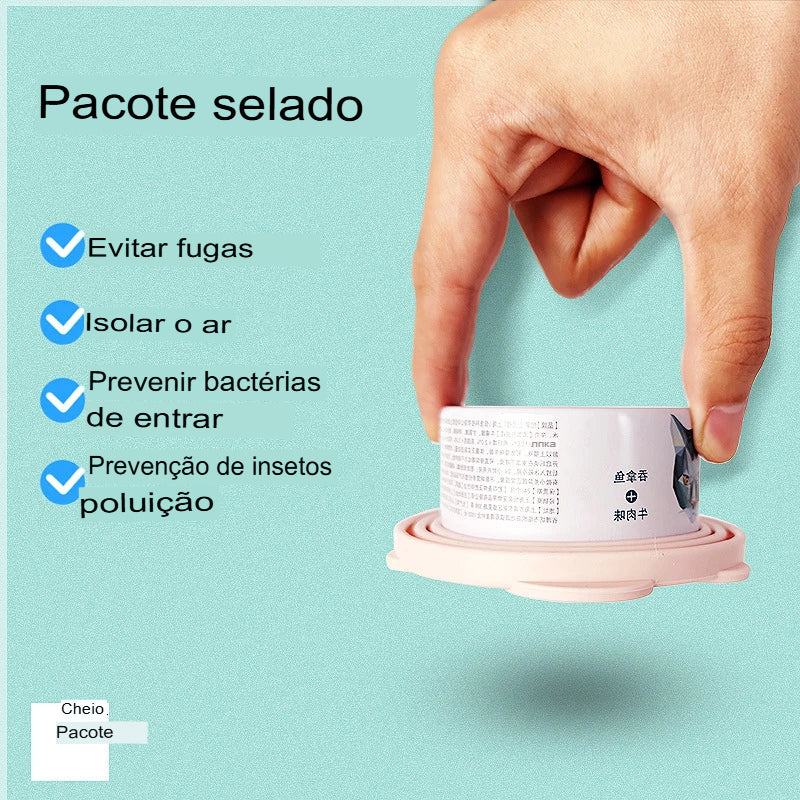 Material de silicone, faz boa colocação, é adequado a 99% das latas de comida pet.